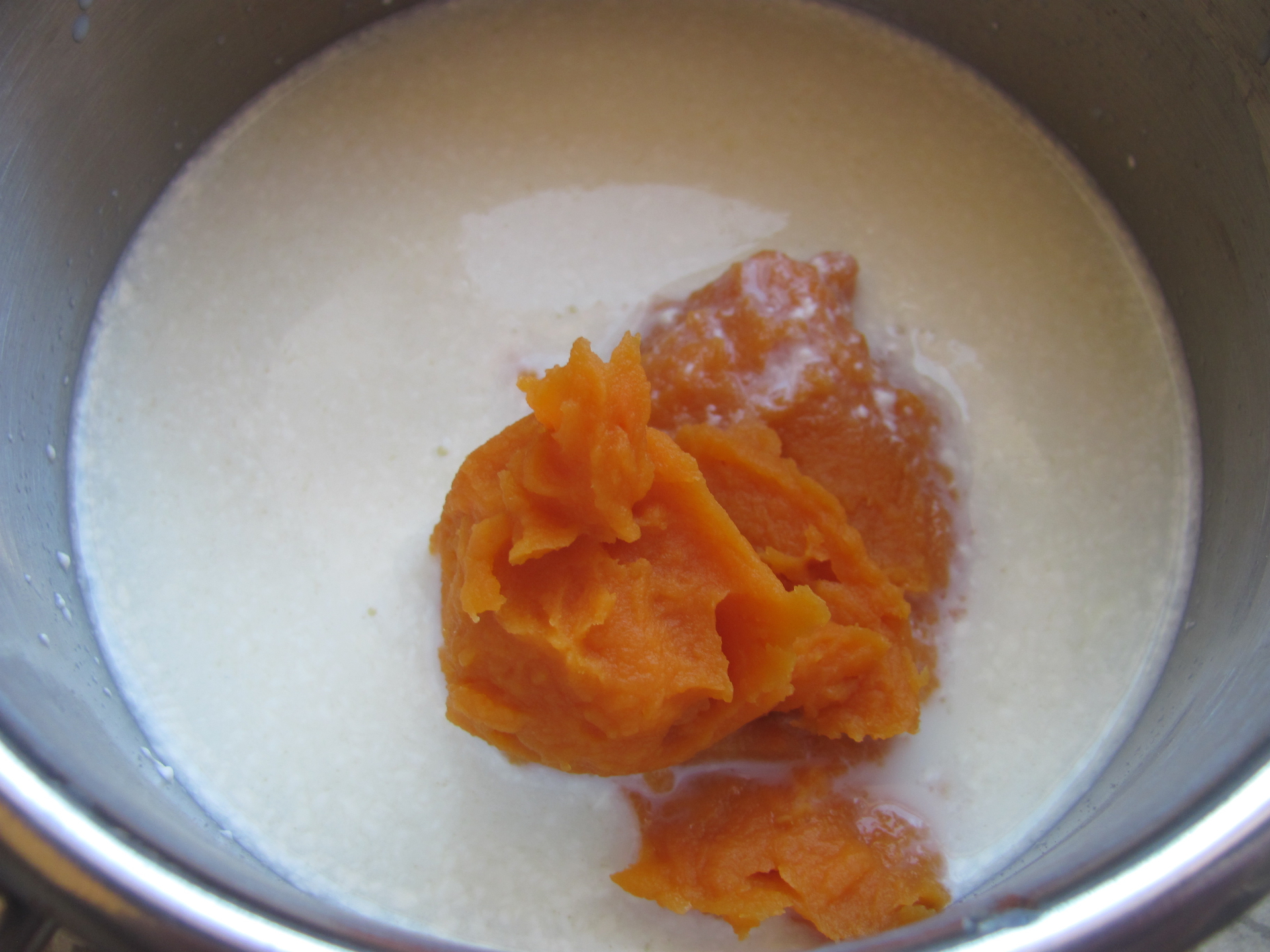 панкейки и кус-кус с бататом, хлеб с сиреневым бататом