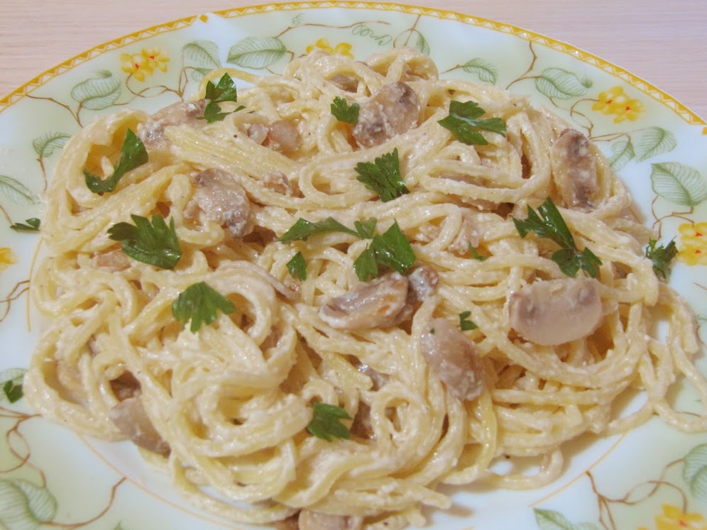 Спагетти со сливочно-грибным соусом