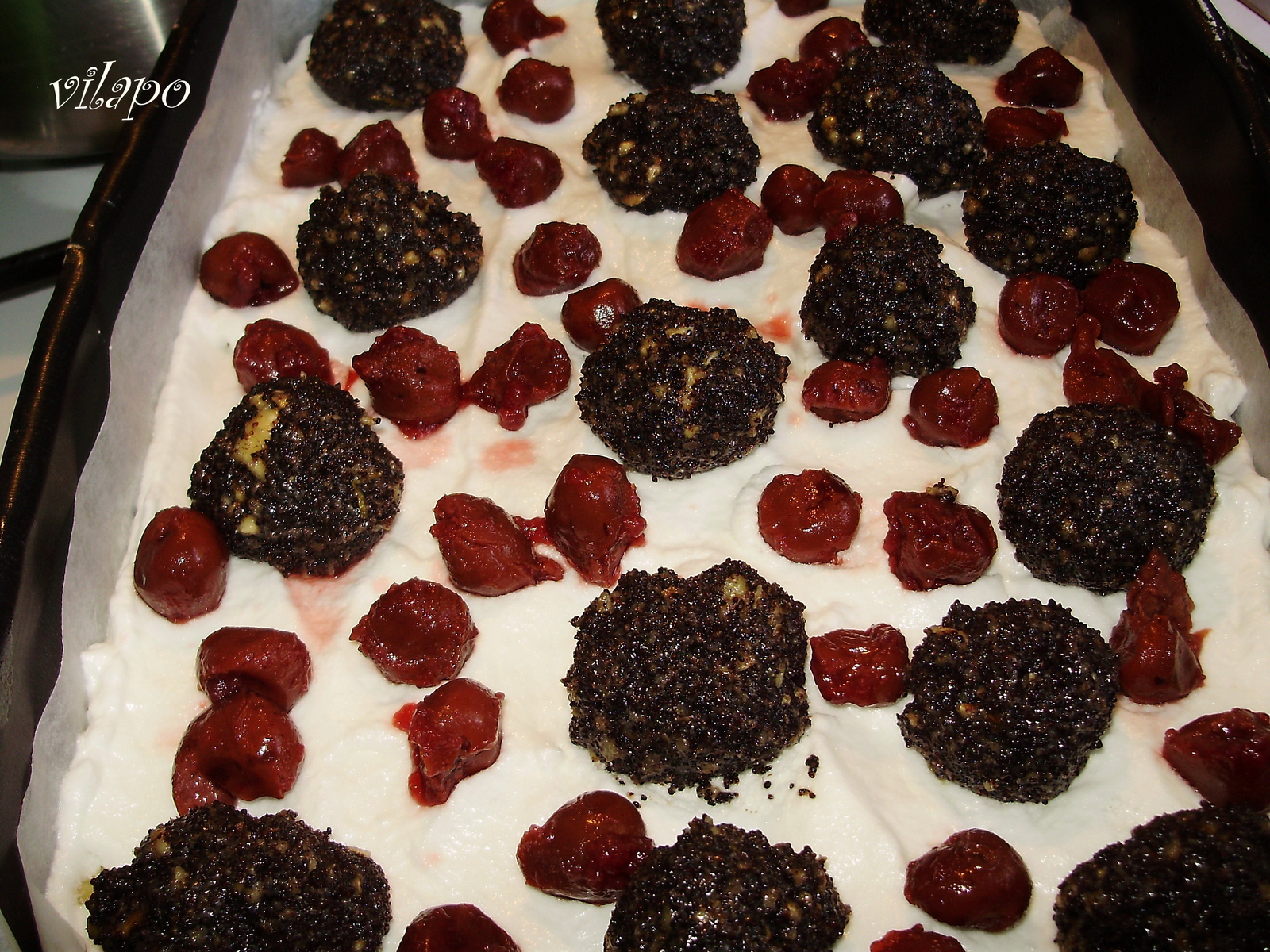 укладываем маковый шарики вишню